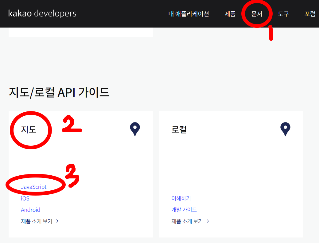 이제 오픈소스를 보러가자 ! 문서 → 지도 → Javascript (본인이 사용할것 고르면됨 나는 자스)